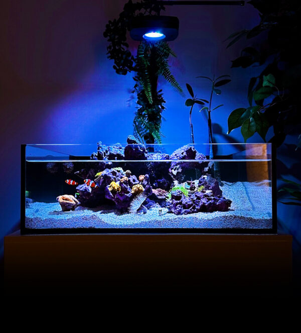 A shallow lagoon style aquarium with a convenient built in filter and unique low profile design you won't find anywhere else.